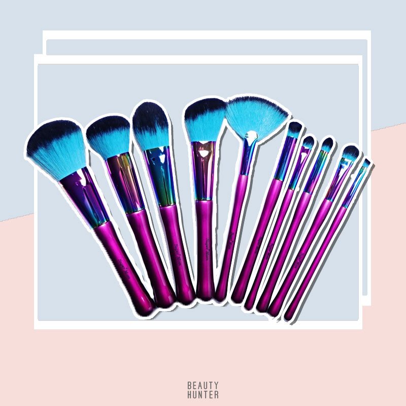 แม้ว่าโทนสีเซตแปรงนี้จะแรงกว่าเซตอื่น ๆ แต่เราก็เลือกมาค่ะ เพราะด้วยด้ามสีชมพูและตัวขอบเหล็กที่ดูแพงเวอร์ เพราะมีความสีรุ้งในนั้น ยอมรับว่าตอนเห็นคืออยากได้เดี๋ยวนั้น ซึ่งเซตแปรง 10 อันนี้เขาก็มาพร้อมกระเป๋าใส่ให้ด้วย บอกเลยว่าคุ้มเกินคุ้ม พกไปไหนก็สะดวก