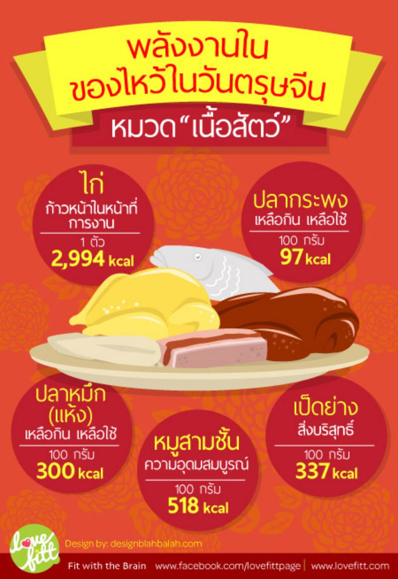 เริ่มกันที่หมวดแรกอย่างเนื้อสัตว์ หรือที่เราเรียกว่าซอแซ โดยเนื้อสัตว์ก็จะมีความหมายถึงความอุดมสมบูรณ์ การเหลือกินเหลือใช้ ไม่ลำบากนั่นเอง ซึ่งหลายคนคงคิดว่าเป็นของต้ม ของนึ่งต้องไม่อ้วนแน่ ๆ แต่จริง ๆ แล้วก็แอบมีแคลอรี่เยอะมาก อย่างเช่น ไก่ 1 ตัวให้พลังงานถึง 2,994 kcal หรือเป็ดที่ให้พลังงานถึง 337 kcal แม้ว่าจะมีปริมาณเพียงแค่ 100 กรัมเท่านั้น ยังไงก็แบ่งสัดส่วนการกินดี ๆ นะคะ