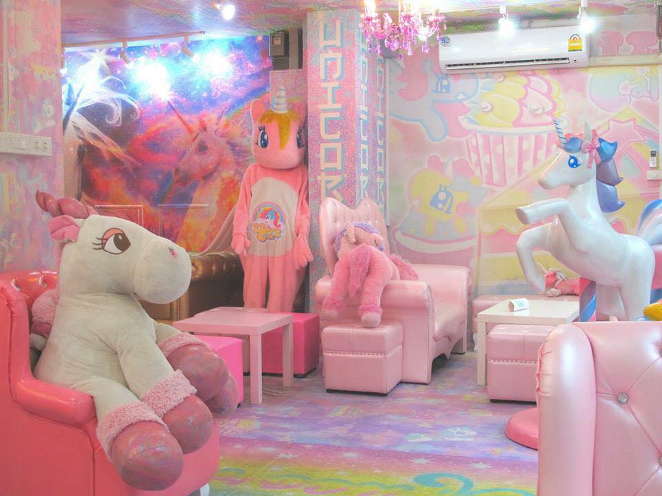 มาเอาใจสายฟรุ้งฟริ้งมุ้งมิ้งกิงก่องแก้วกันหน่อยกับ ‘ยูนิคอร์นคาเฟ่’ ที่ทั้งร้านตกแต่งไปด้วยสีพาสเทลและเหล่ายูนิคอร์นและโพนี่เต็มไปทั่วทั้งร้าน ไม่บอกนึกว่าหลุดไปในโลกยูนิคอร์นซะแล้ว พิเศษกว่านั้นก็ตรงเมนูขนมหวานของเขานี่แหละค่า โดยเฉพาะเค้กสายรุ้ง เรียกได้ว่าทางร้านเขาเข้าอกเข้าใจสาวกยูนิคอร์นเป็นอย่างดี เขาถึงได้ดีไซน์สินค้าเเละขนมต่างๆ ให้ไม่หลุดคอนเซ็ปต์เลย ใครอยากไปสัมผัสด้วยตัวเอง แค่นั่ง BTS แล้วไปลงที่สถานีช่องนนทรีได้เลย