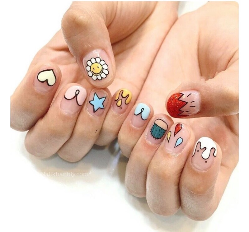 เพิ่มความรักใส ๆ หัวใจ 4 ดวง เอ๊ย!! ไม่ใช่แล้ว ก็คือว่าเราอาจจะเพิ่มความน่ารักตะมุตะมิด้วยการทาเล็บครึ่งเดียว แล้วอาจจะเหลือสัก 1-2 นิ้ว เพื่อเพ้นท์ลายการ์ตูน หรือลายสัตว์สุดคิ้วท์ที่เราชอบลงไปตามใจเลยค่ะ หรือใครหลงกับความน่ารักมาก ๆ เกิ๊นก็เพ้นท์ไปเลยทุกนิ้วยังได้ เพราะนิ้วเรายังมีพื้นที่เหลือตั้งครึ่งนึงนี่คะ!