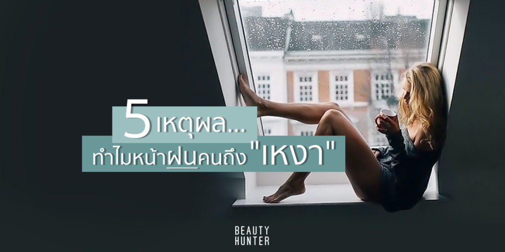 ความเหงา” มาพร้อมกับ “ฝน” เห็นด้วยกับคำนี้กันมั้ยคะ ? เชื่อว่าหลายคนก็คงคิดคล้ายๆกัน เพราะไม่รู้ทำไมเหมือนกันนะ พอฝนตกทีไร ใจมันก็รู้สึกเปลี่ยวๆเฉาๆ ขึ้นมาแปลกๆ วันนี้ BEAUTY HUNTER ไม่ได้จะมาช่วยบรรเทาความเหงา แต่เราจะพาไปหาเหตุผลว่าทำไมหน้าฝนคนถึง “เหงา” เป็นพิเศษ จะเป็นเพราะอะไรกันแน่ มาหาคำตอบไปพร้อมๆกันค่ะ : )