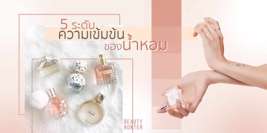 นอกจากการรักษาความสะอาดเป็นพิเศษแล้ว “น้ำหอม”ก็เป็นอีกตัวช่วยสำคัญของสาว ๆ อย่างเราเลยทีเดียว แต่ถ้าเรายังไม่เข้าใจเรื่องระดับความเข้มข้น ก็อาจทำให้เลือกน้ำหอมมาใช้ผิดประเภทได้ เพื่อไม่ให้พลาดอีก วันนี้เรามารู้จักความเข้มข้นของน้ำหอมทั้ง 5 ระดับไปพร้อม ๆ กันดีกว่าค่ะ