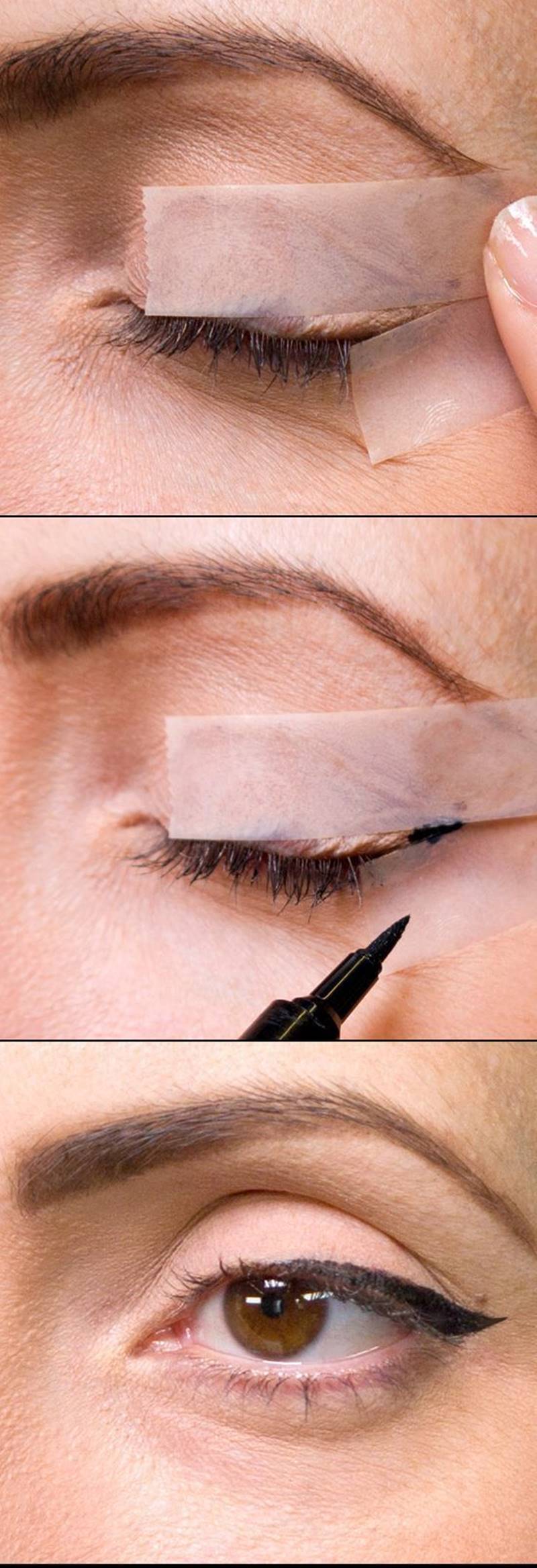 - เขียนหางของอายไลเนอร์ตามสก๊อตเทปที่แปะเอาไว้