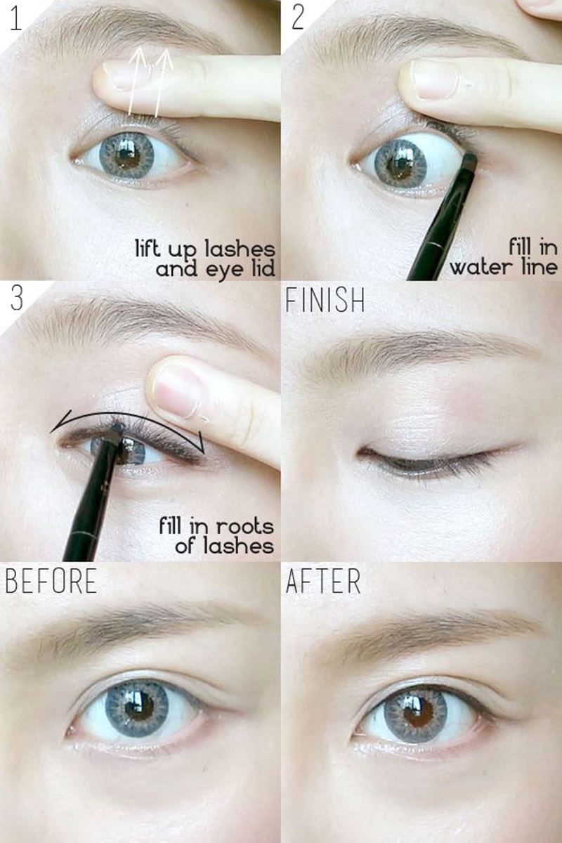 - ใช้ดินสอเขียนขอบตาเขียนเส้น inner ด้านบนเพื่อทำให้ฐานขนตาดูหนาขึ้น