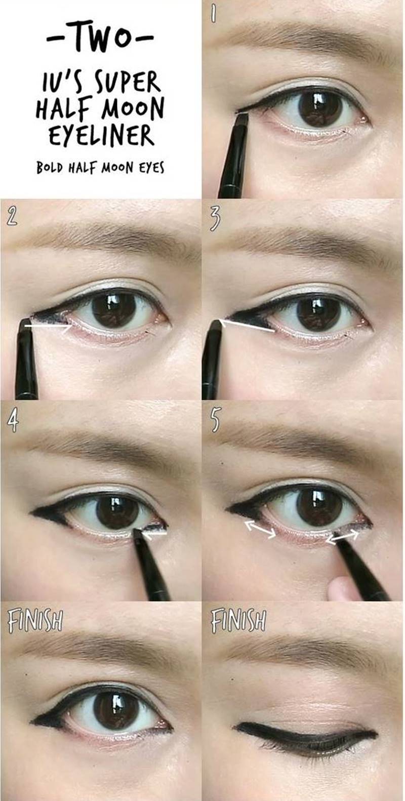 - เติมความหนาและคมของอายไลเนอร์บริเวณหางตาจนถึงกลางตาเท่านั้น
